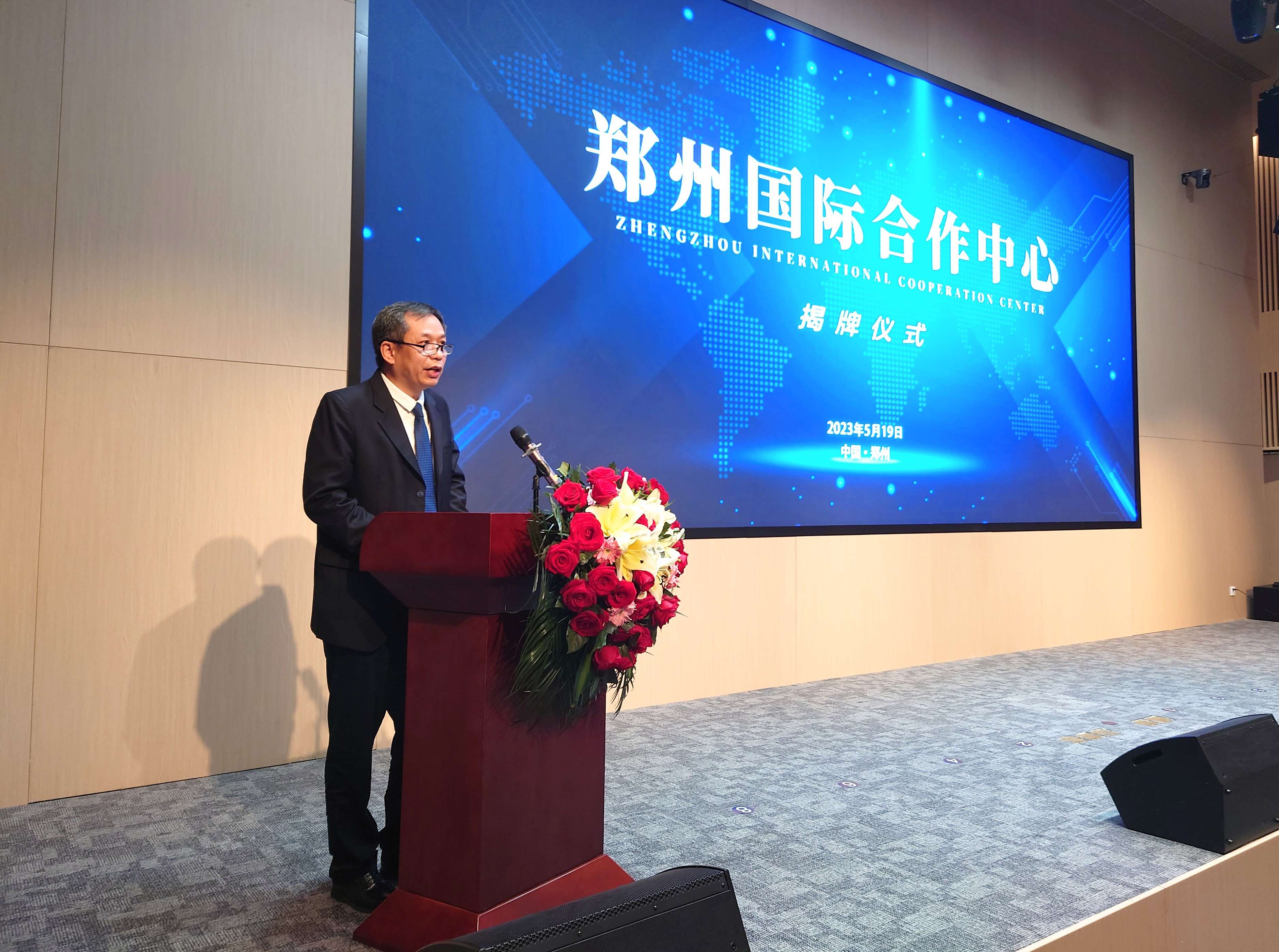 5月19日,郑州国际合作中心揭牌仪式在郑州市龙湖国际中心举行。省委外办主任梁杰一、郑州市市长何雄、联合国工业发展组织全球投资和促进办公室和机构伙伴关系司司长龚维希出席仪式并致辞。