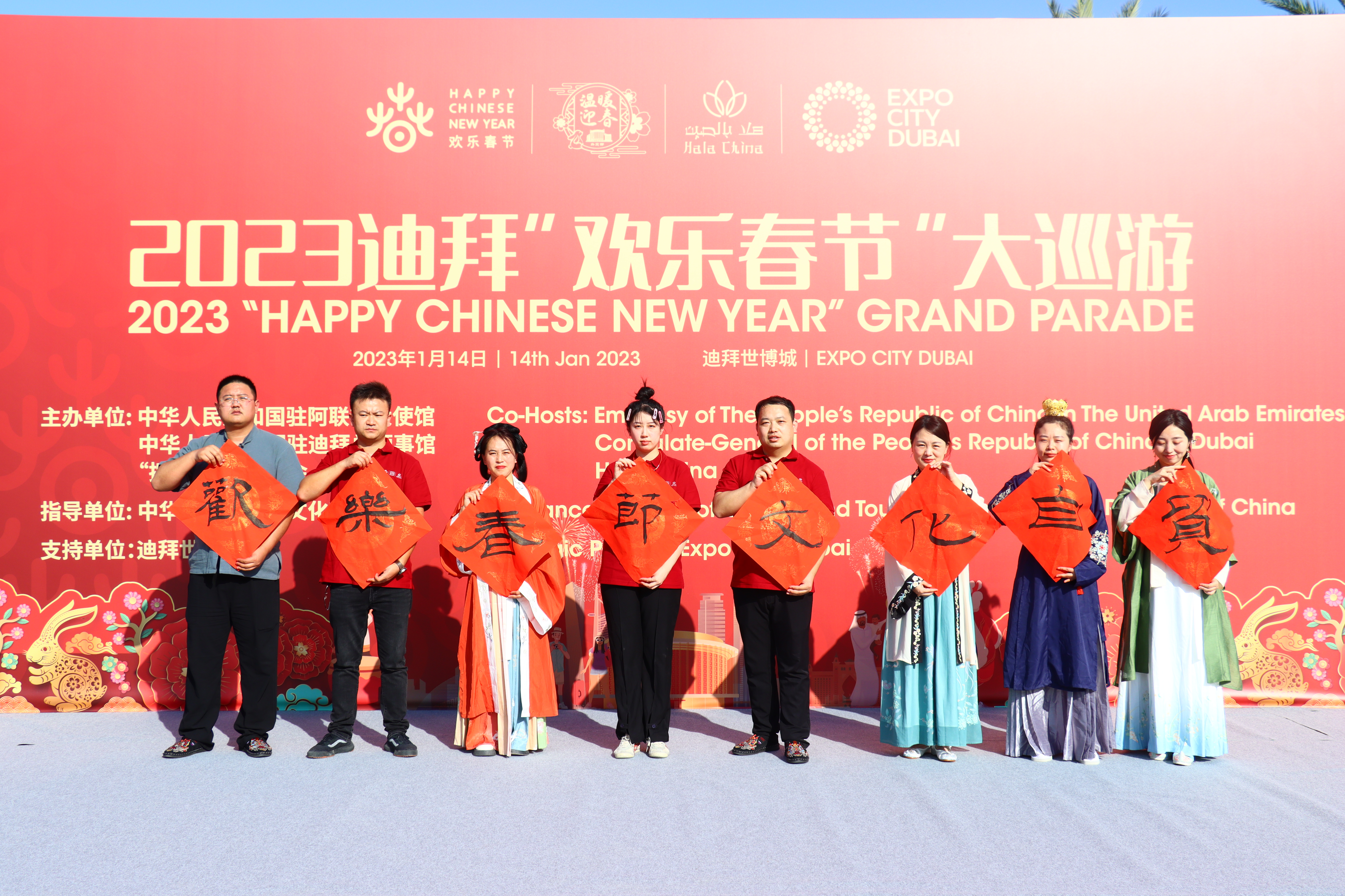 1月14日,中国·自贸试验区开封片区文化出海代表团赴阿联酋参加2023迪拜“欢乐春节”大巡游活动。
