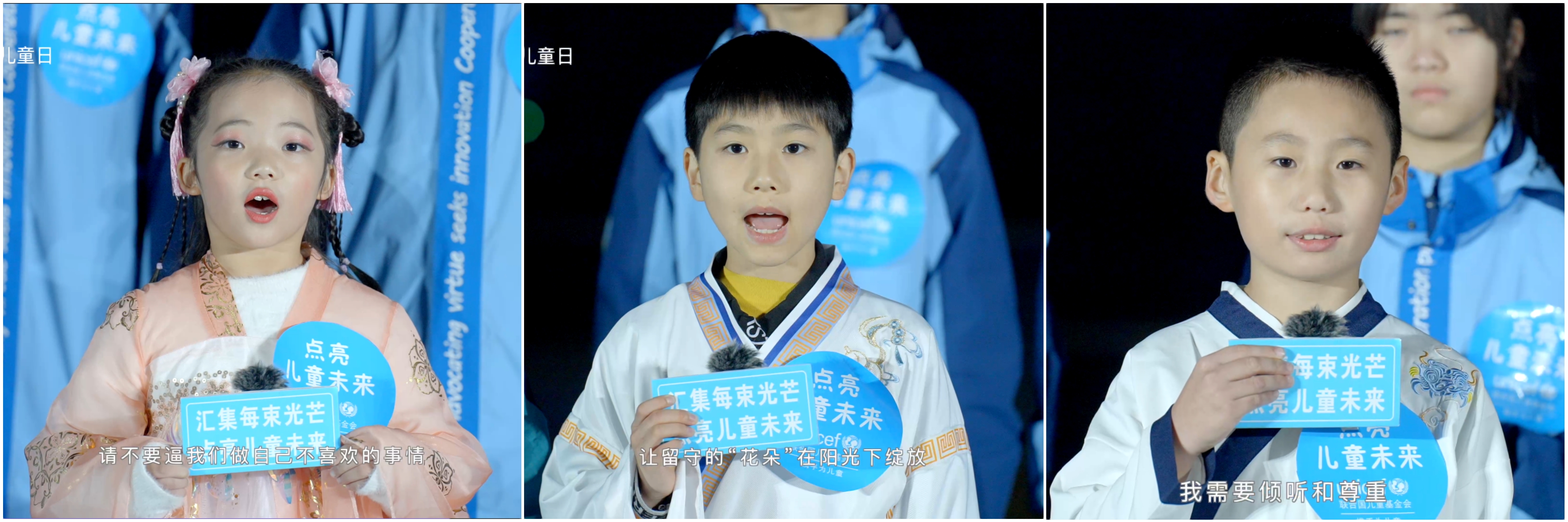 活动首先由儿童代表用中文和英语分别介绍了本次活动洛阳会场情况和洛阳厚重的历史文化;随后分别围绕“和平、尊严、宽容、自由、平等、团结”这六种联合国《儿童权利公约》倡导的精神进行宣传,“儿童是世界的未来,是和平的种子,守护每一名儿童,祈愿世界更加美好!”“兴趣是最好的老师,呵护童心,尊重个性,等待我们长成为自己喜欢的模样。”……孩子们的童声稚语令人感动,身着汉服的儿童彰显中华自信。“过而能改,善莫大焉”“苔花如米小,也学牡丹开”……中华古谚警句和古诗词通过德语、西班牙语等外语娓娓道来,赋予了世界儿童日更新更美的中华意境,将宽容律己、自信自立等中华优秀传统文化传递给全世界的儿童。活动在“汇集每束光芒,点亮儿童未来”的集体呼声中推向高潮。