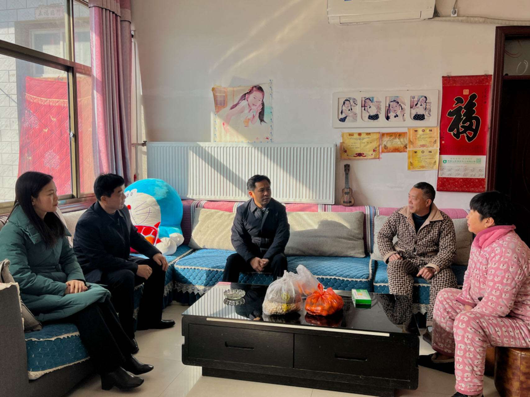 李洪涛一行轻车简从,一进村直接先入户走访。他走进3户困难群众家中,耐心询问生活近况,送去祝福和慰问品。他尤其在意群众的健康水平和收入状况。在其中一户,李洪涛关切询问这个家庭患病孩子的近况,在了解到病情时有反复而耽误上学的情况后,再三嘱咐一定要及时就医,尽力守护他的身心健康。殷殷嘱托暖人心,一家人送别李洪涛时都已眼含泪光,令人动容。在另外两家,李洪涛细致询问了他们今年的收入情况,对光伏收益分配补助、助学金、电费补贴等帮扶保障的落实到位表示肯定,叮嘱他们不忘党恩努力工作幸福生活,并祝福他们过个好年。