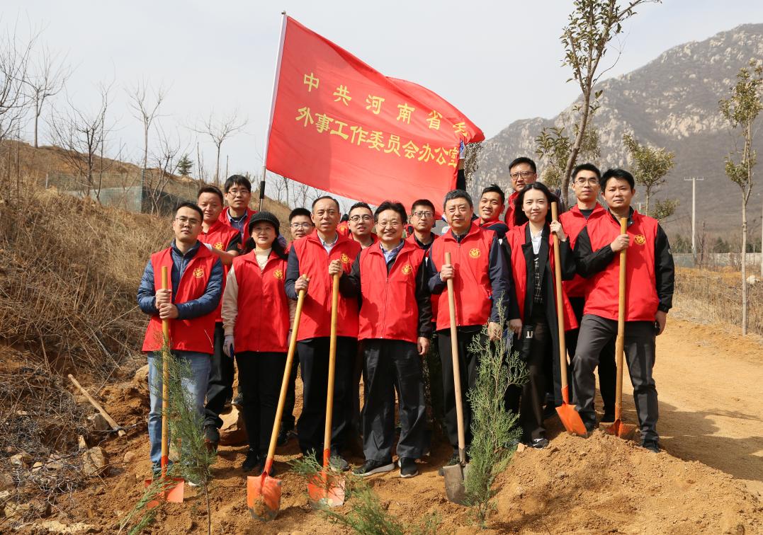 3月9日上午,省委外办17名志愿者在副主任、机关党委书记王自文和机关文明办负责同志带领下,来到郑州市义务植树基地(登封市石道乡陈家门村)参加2022年春季义务植树活动。