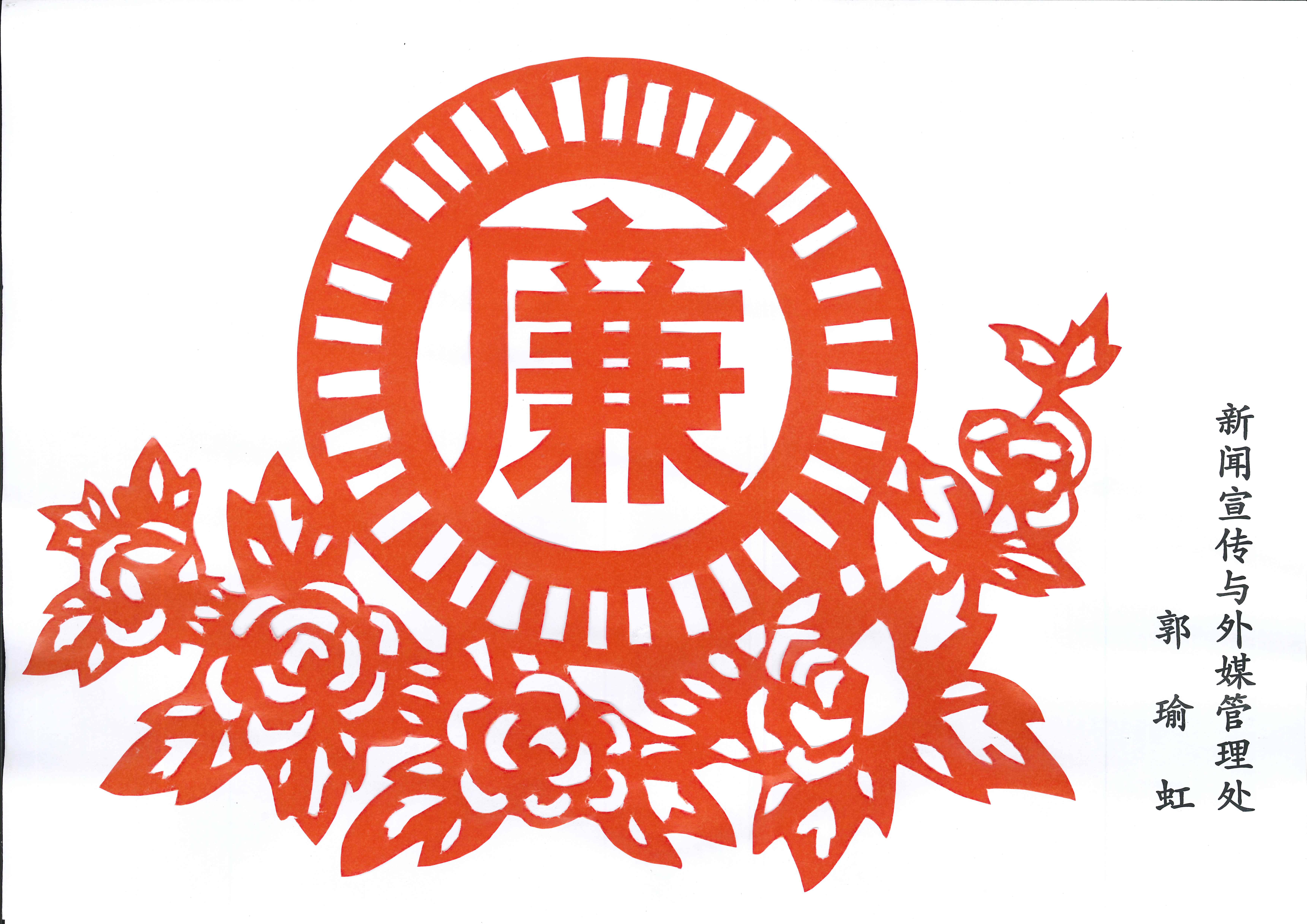 郭瑜虹同志剪纸作品《“廉”花盛开》