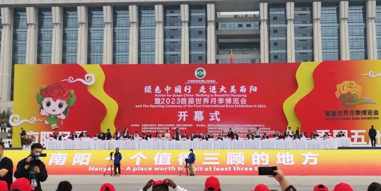 南阳是全国最大的月季苗木繁育基地,经过多年发展,月季已成为一张亮丽的城市名片。4月28日,由全国绿化委员会、国家林业和草原局、全国关注森林活动执行委员会、中国绿化基金会、世界月季联合会、中国花卉协会主办,河南省林业局、河南省花卉协会、南阳市人民政府等单位承办的“绿色中国行——走进大美南阳暨2023首届世界月季博览会”开幕。博览会以“南阳月季,香飘五洲”为主题,集中展示南阳生态建设新成果、新成就,深化产学研国际交流合作,培育壮大月季特色产业,弘扬生态文明,实现“以会为媒、借会招商、强旅兴城、绿色发展”,为建强省域副中心城市注入新动力。此次盛会为南阳市举办第21届世界月季大会打下坚实基础。
