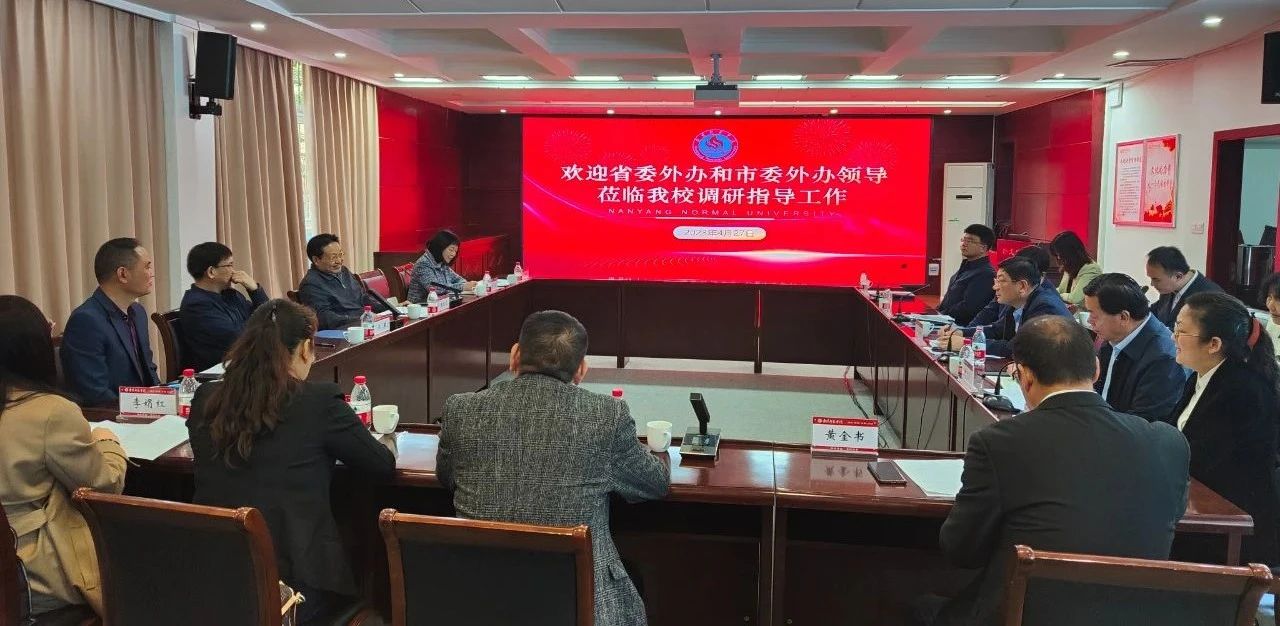在宛期间,王自文一行赴南阳师范学院调研。座谈会上,南阳师范学院党委书记卢志文介绍了学校坚持教育对外开放并取得的成绩,以及“十四五”发展目标规划等情况。南阳师范学院院长张宝锋从“引进来”“走出去”两方面重点介绍了学校在国际化人才培养、高端引智等方面情况。