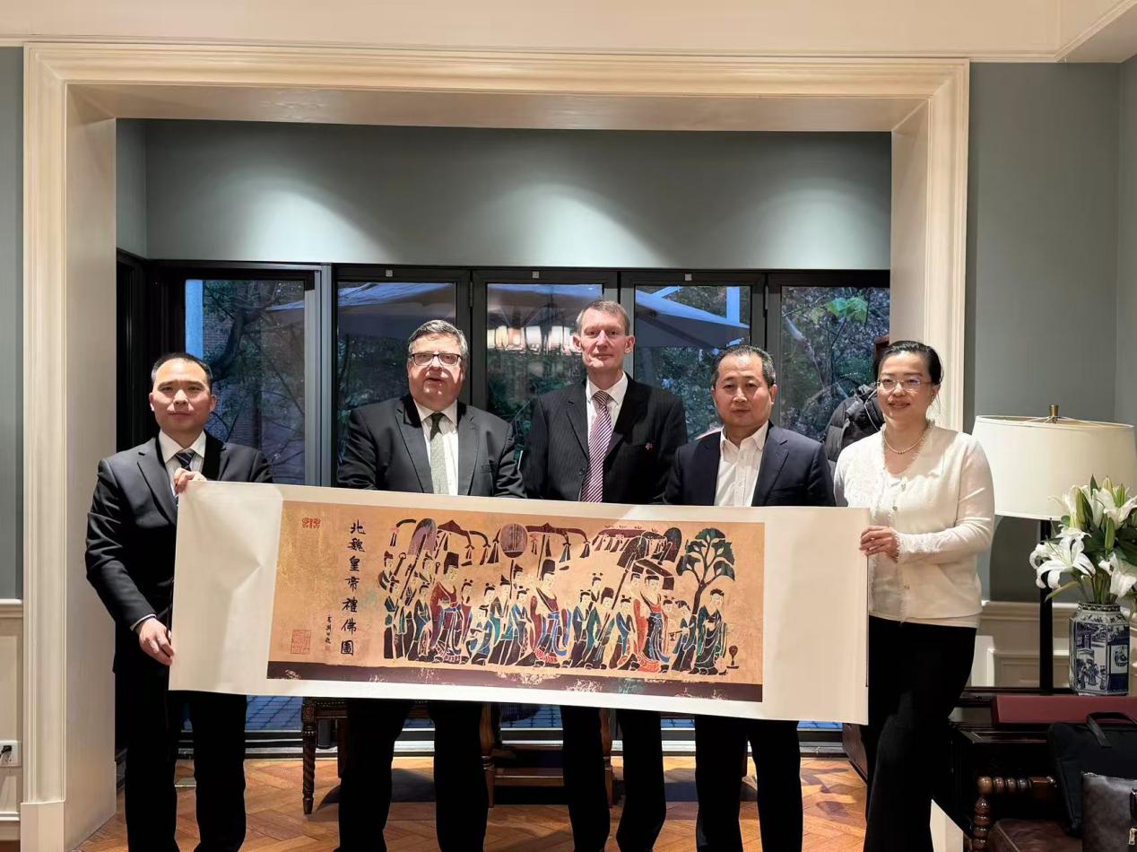 招待会前,李冰同麦多明、英国驻武汉副总领事柯睿哲就2026年双方合作规划交换意见。