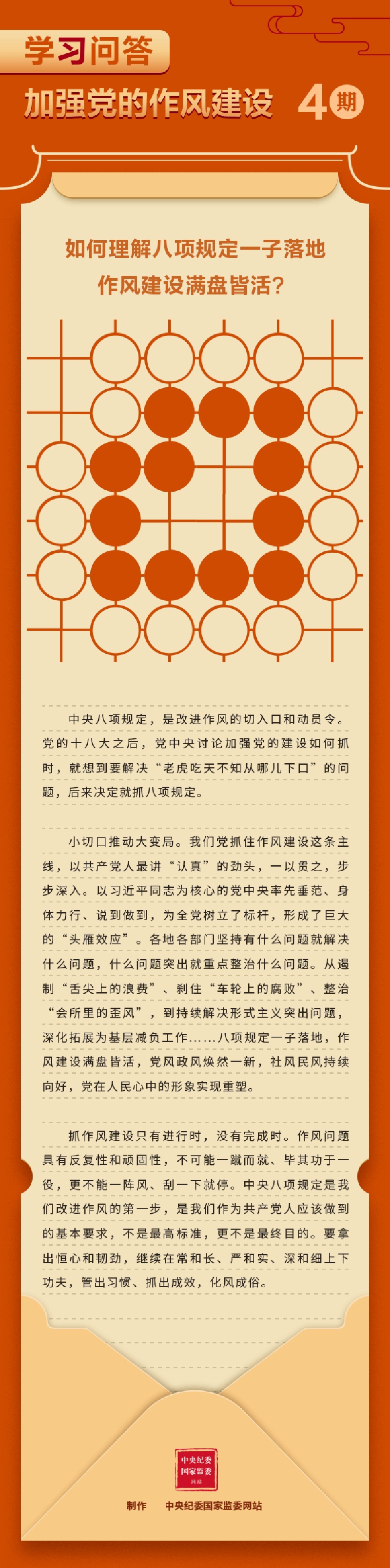 学习问答•加强党的作风建设④ 如何理解八项规定一子落地,作风建设满盘皆活?