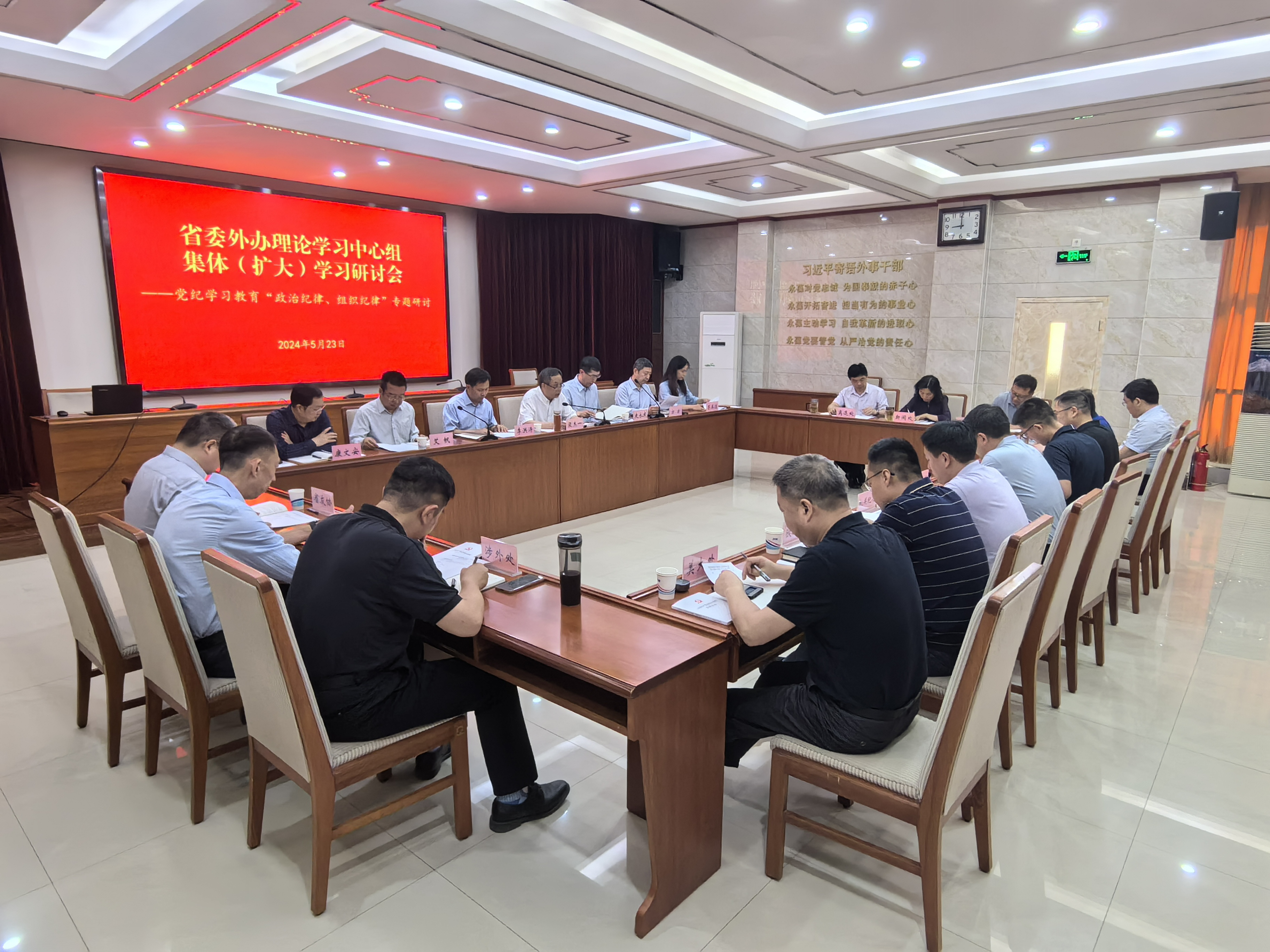 5月23日,省委外办理论学习中心组举行集体(扩大)学习研讨会,深入学习领会《中国共产党纪律处分条例》(以下简称《条例》)对政治纪律、组织纪律的要求,示范带动全办党员干部更好学纪、知纪、明纪、守纪。省委外办主任梁杰一主持会议并作总结发言,省委外办班子成员、二级巡视员、机关各处室单位负责人参加。河南省委直属机关工委第一联络组第二小组列席会议巡听旁听。